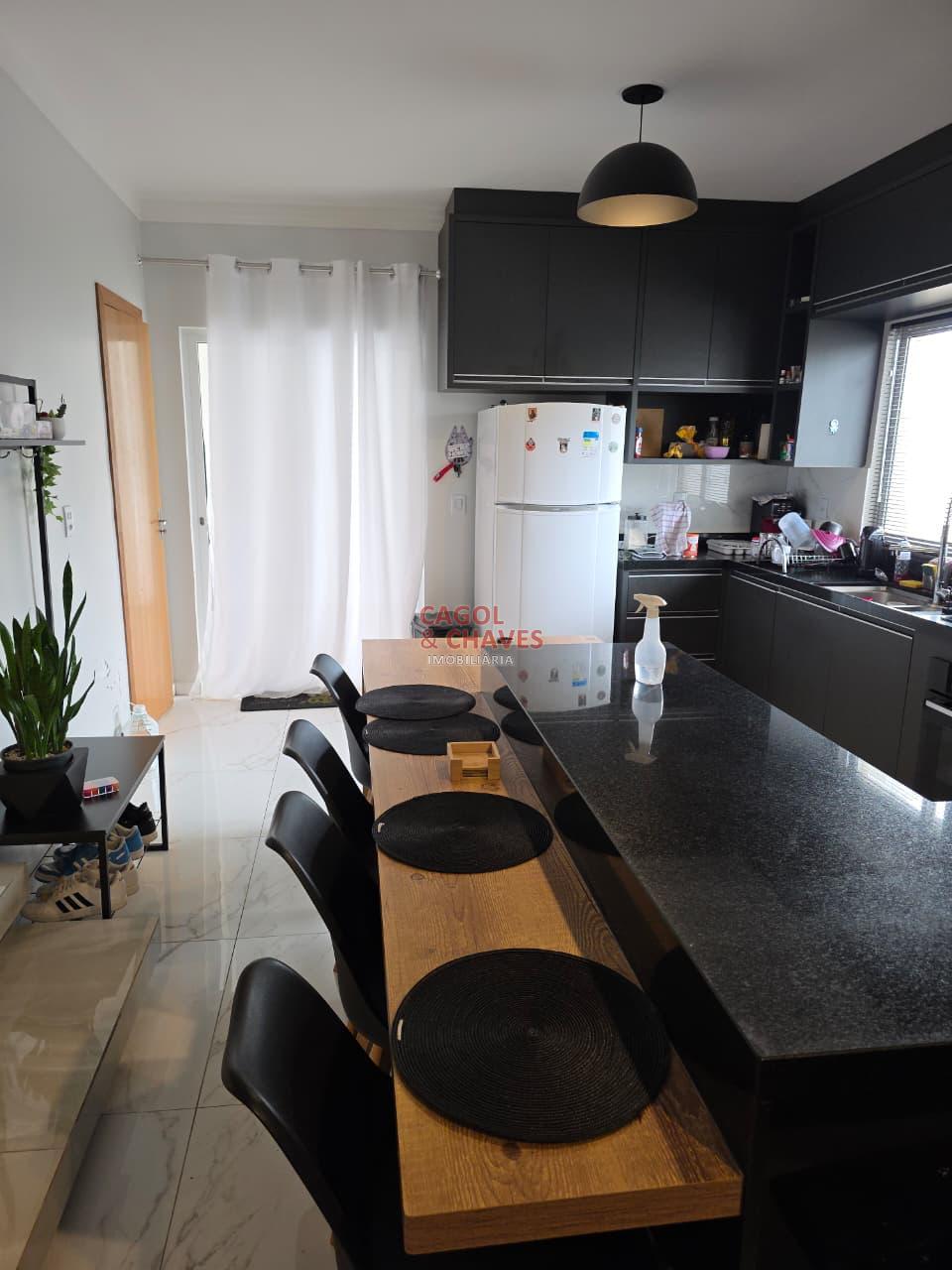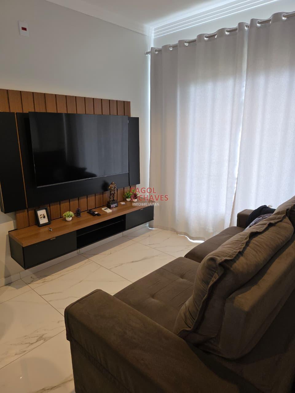 Sobrado com 01 suíte com sacada, 02 quartos com sacada, 01 banheiro social, sala, cozinha, área de serviço e vaga de garagem coberta.